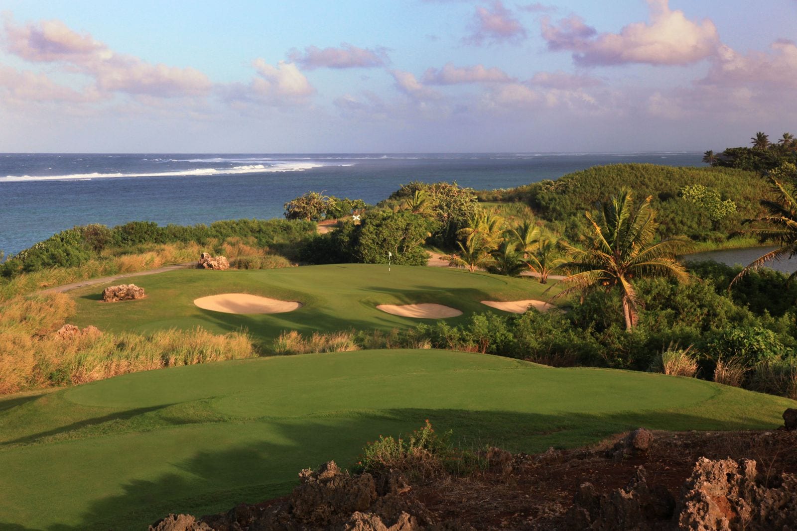 Although some of the longer carries can seem intimidating, you’ll find reprieve on holes that feature open fairways and reward smart play around the greens. Go ahead and chip it in, babe. You’re in the middle of the South Pacific with minimal witnesses if you happen to bump and miss it.